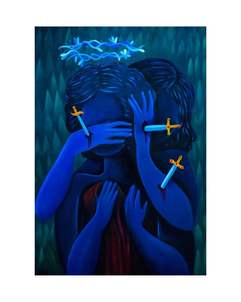 Donde esté vuestro tesoro, allí estará también vuestro corazón. Esta obra fue escogida por un plástico, dueño de galería para ser expuesta en una Exposición internacional colectiva.